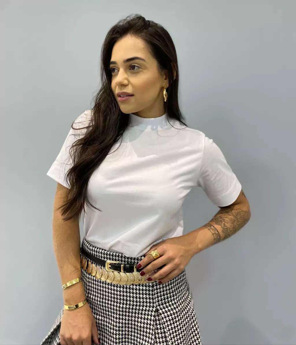 Confeccionada em Malha de Algodâo Premium Menegotti, a Betina entrega conforto e caimento impecável. Possui gola mais alta em ribana canelada, mandas levemente alongadas e soltinhas, além de costura reforçada ombro a ombro. Garantindo durabilidade e um toque sofisticado ao seu visual.