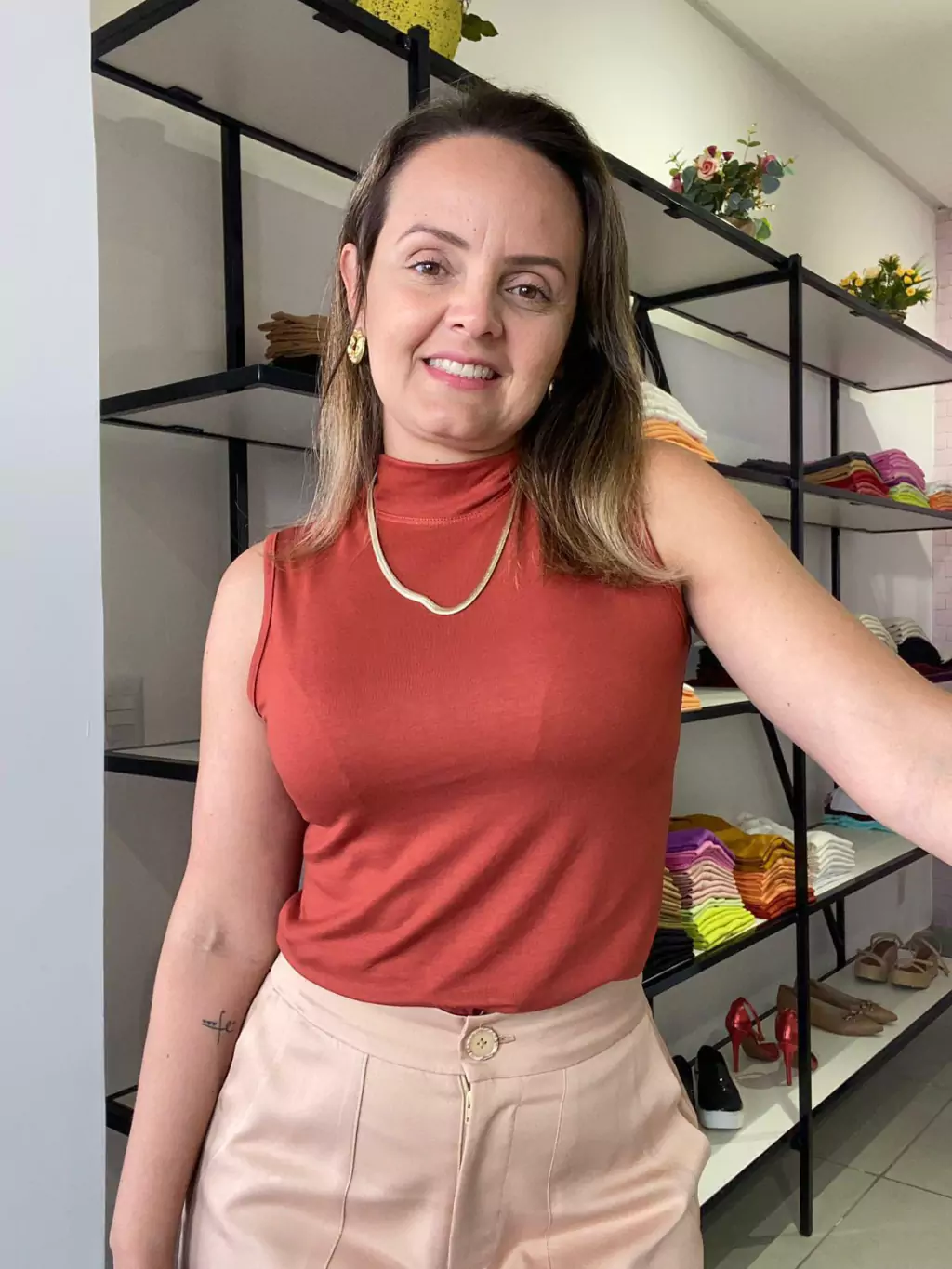 Invista no requinte da Regata Rebeca e sinta a diferença de vestir uma peça que valoriza seu estilo com delicadeza e bom gosto.